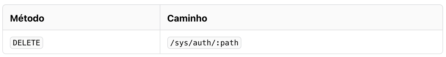 Este endpoint desativa o método auth no caminho de autenticação fornecido.