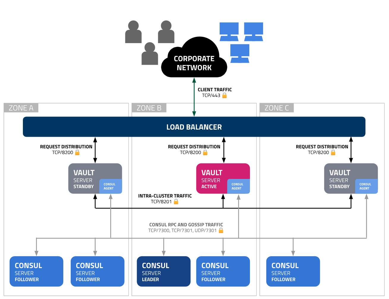 - Use Consul ou armazenamento integrado para alta disponibilidade (HA) e back-end de armazenamento.